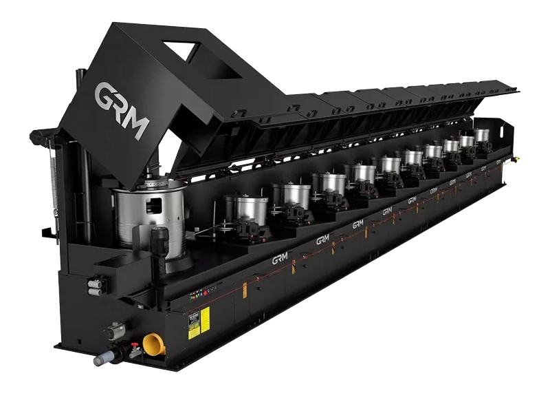 GRM Rolling Mill тарабынан сунушталган GRM сериясындагы сапаттуу жогорку ылдамдыктагы так зым тартуучу машина - бул жогорку, орто жана аз көмүртектүү болот зым, дат баспас болоттон жасалган зым, жез зым жана формадагы эритме зым үчүн атайын иштелип чыккан жогорку эффективдүү иштетүү системасы. "Зымды жукартуу" үчүн жөнөкөй аппараттан алда канча көп, ал зым материалынын механикалык касиеттерин сактоо менен бир эле убакта өзгөчө жогорку беттик финишке жетүү үчүн тактык серво-жүргүч системасын жана жабык контурдук чыңалуу контролун колдонот.